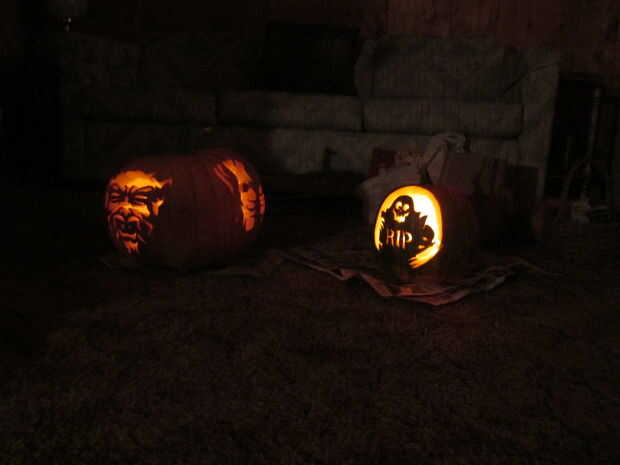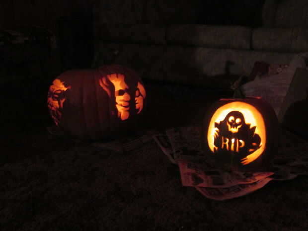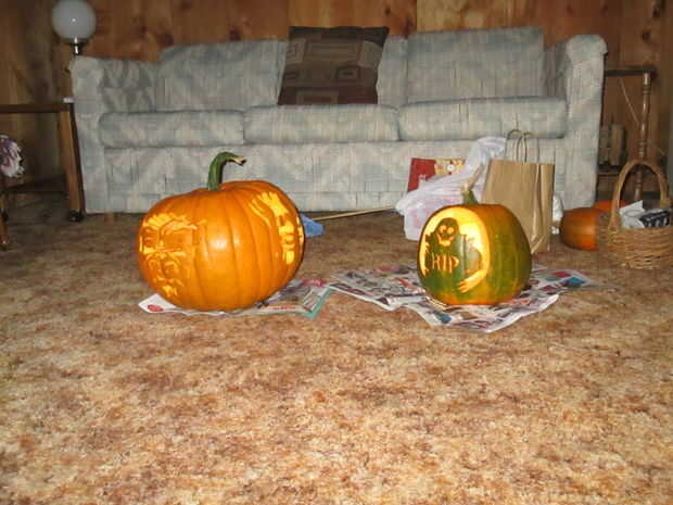 Tienen una dificultad para valorar en la foto como calabazas, 1-5. Algunos de los cuatros son bastante fáciles, mientras que los otros cuatros son bastante tediosos. No intento cualquier cincos como tuve que hacer un total de 5-6 diseños, junto con recoger y clasificar las semillas de lo puré, todo en unas 5 horas. Algunas de las calabazas fueron bastante grandes así que hice dos diseños en cada uno.