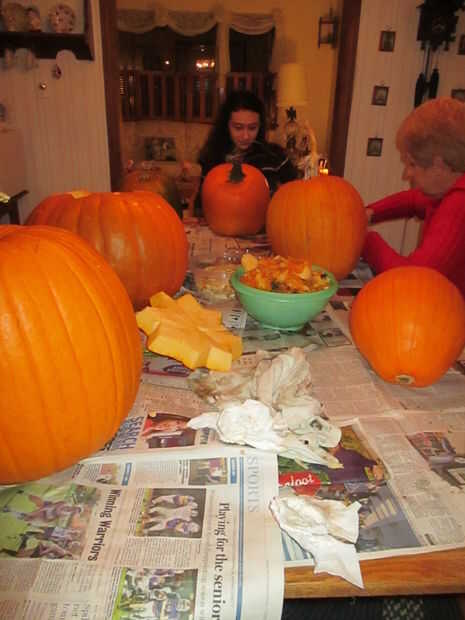 Tenemos aproximadamente 10 libras de calabaza mugre que nos trajo de vuelta a nuestros pollos. Espero que no o.d. en beta caroteno. : D