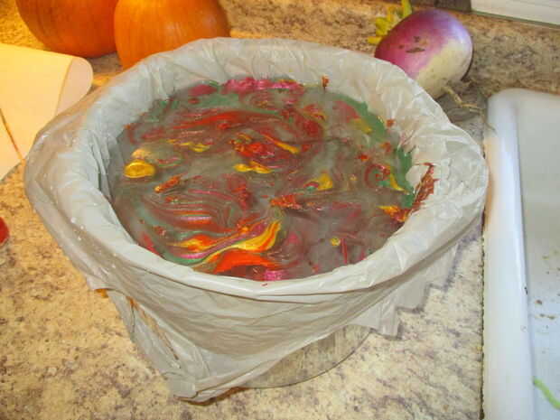 Descarga de las aguas residuales concienzudamente. Allí realmente no debe ser mucho dejar flotando en la parte superior, pero este material apesta y no quiero a olerlo otra vez.