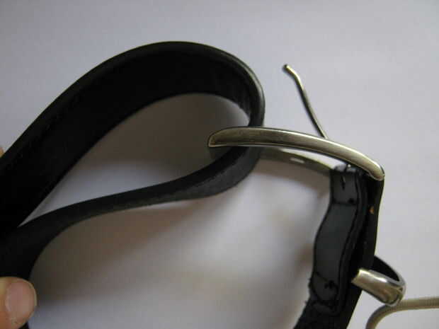 No ajuste la hebilla y tire el extremo suelto encima de la hebilla. Esto utilizará la fuerza aplicada al extremo de perder a ceñir el cinturón alrededor del elemento y luego tire de ella hacia la izquierda.