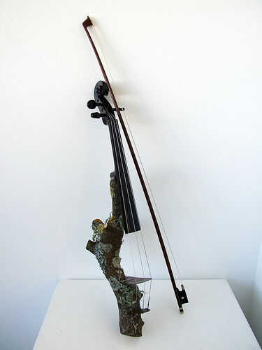 Ahora estoy haciendo un bajo cuerda 2 del cuerpo del violín y un viejo roto encima de guitarra, voy a publicar presentaciones más pronto con alguna esperanza.