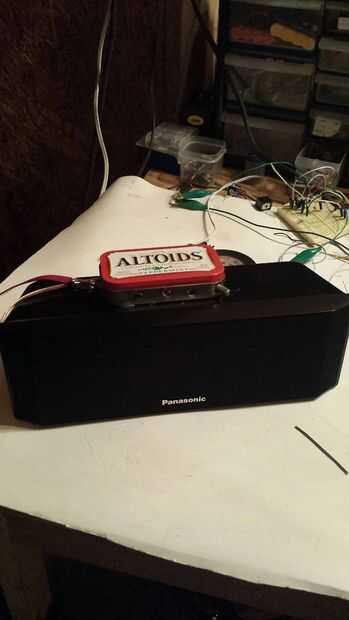 La salida permite cambiar entre el altavoz construido el amplificador o el Audio se puede conectar para conectar a un conjunto de pre-Existing de altavoces. Con el Lm386 chip y unos pocos componentes discretos uno puede construir un altavoz pequeño para uso en el hogar o utilizar sobre la marcha.