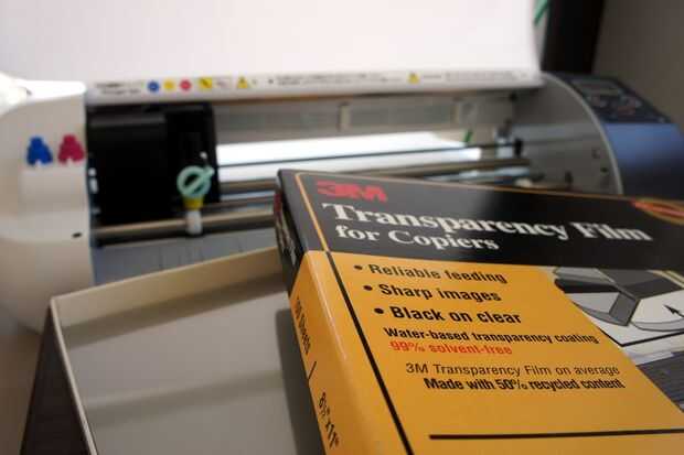 No dude en cortar una pieza apropiada usando un par de tijeras. Sin embargo, si usted tiene uno de esos baratos guillotinas programables, que va a funcionar aún mejor. Impulsado por un archivo postscript (mazetops.ps de http://www.thingiverse.com/thing:65025) en graphtecprint, tomó sólo unos minutos para mi cortador de papel silueta de sub-$200 extraer una matriz de 4 x 6 de estas cubiertas de una sola hoja de material de transparencia. Lo mejor es que son todos del mismo tamaño exacto con las esquinas bien redondeadas y sin aspereza en los bordes. Adviértase que tijeras a veces dejan un borde áspero de provocar algún levantamiento de esquina después de termosoldado...