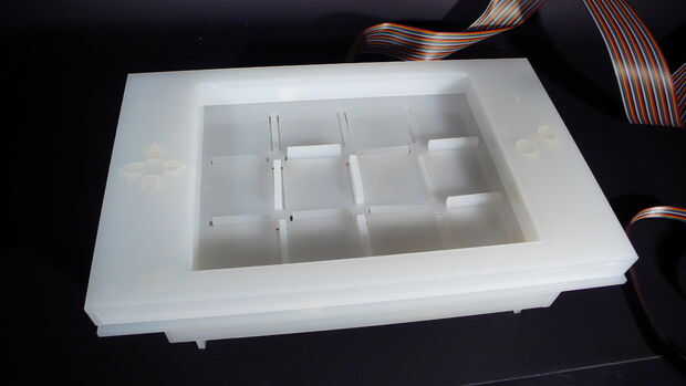 Un acelerómetro de tres ejes captura la inclinación de la crear Kinoma. Kinoma crear procesa los datos de la inclinación en el software para controlar la rotación de dos servomotores conectados al laberinto. El resultado es intuitivo movimiento del l