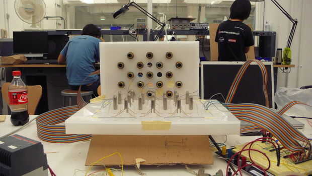A continuación, os adjunto bandas de goma en la parte inferior de la Junta, para mantener los componentes de la pared prensados hacia arriba. Cuando un solenoide, tira la pared abajo.