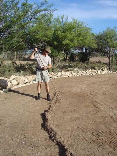Foto: 7Prep: rastrillo piedras afiladas para ayudar con la nivelación. Me pareció más fácil de dividir el círculo en cuadrantes pequeños para hacerlo más manejable en dosis pequeñísimas.