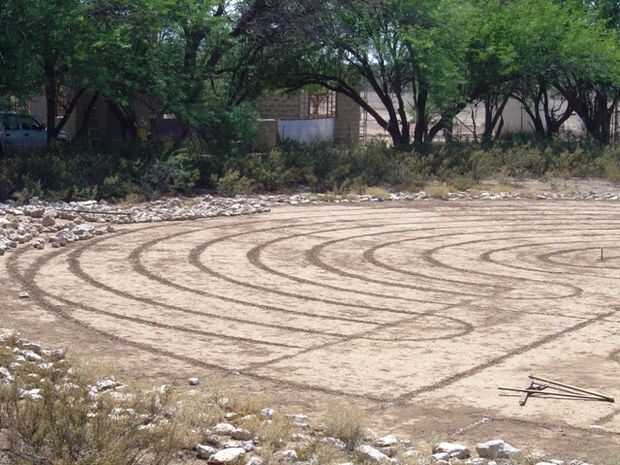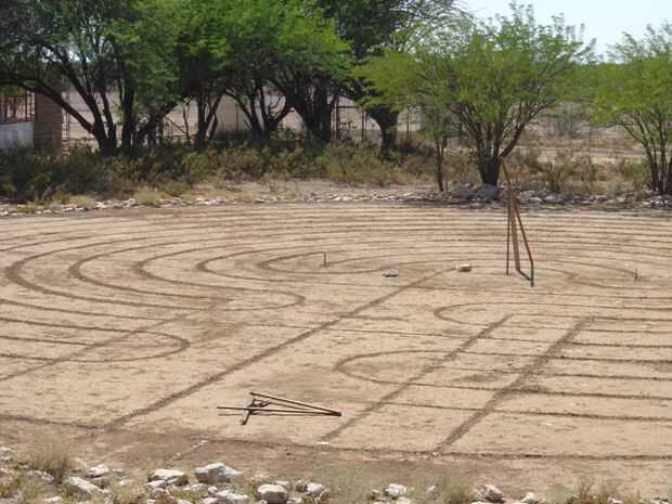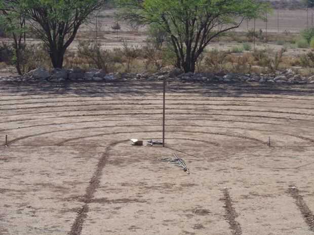 En el paso 3 usted decidido dónde establecer su laberinto, el ancho entre paredes y martilló su estaca en la tierra muy profundamente. (Estoy llamando este punto C)