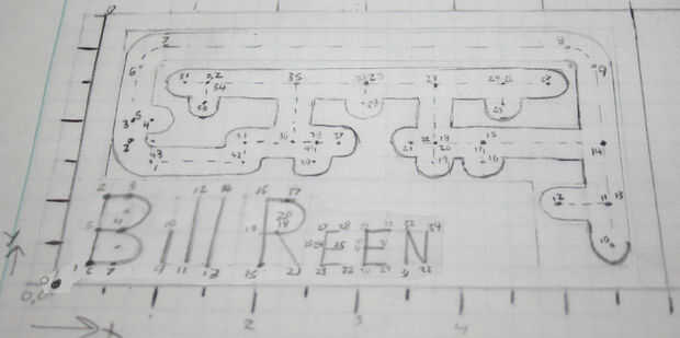 Coloque la parte inferior izquierda que 0,0. encontrar las coordenadas de X Y de cada punto que se necesita para que la CNC a seguir el camino entre el centro de los círculos y arcos.