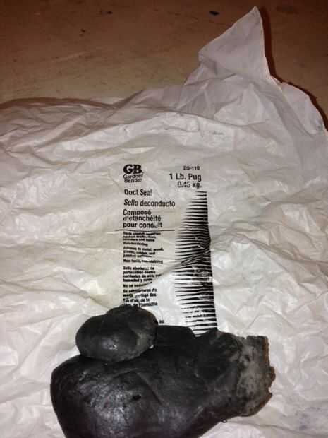 -Empujar un trozo de masilla (ver foto) en la parte posterior de una sección y empuja la célula CDS a través.  Masilla de plomería es barato y en Home Depot.