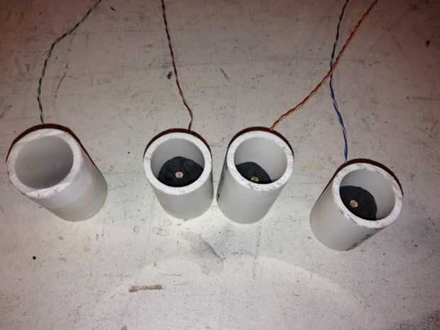 -Perfore un pequeño agujero en el tubo de PVC, pasar los cables de 1 pie por y y la soldadura a la celda CDS.
