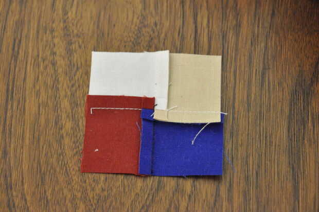Junté dos pares de cuadrados, cada uno de ellos tendrá el margen de costura para un lado. Entonces línea uno contra el otro, por lo que los márgenes van en direcciones opuestas y cosen juntas. Después de eso, yo aparte pop los extremos de las dos primeras costuras, por lo que puedo extender las costuras en la intersección de plana.