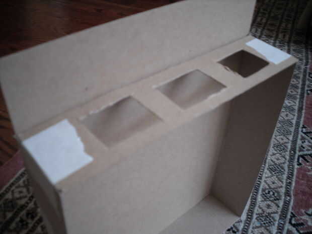 Utilizando el lápiz, dibuje 3 plazas por lo que si se corta la pieza perfectamente en tener los lados sería simétrico. Puede cortar una hendidura en un lado de los tres cuadrados y cortar con las tijeras o utilizar la navaja todo el tiempo. Es su opción.