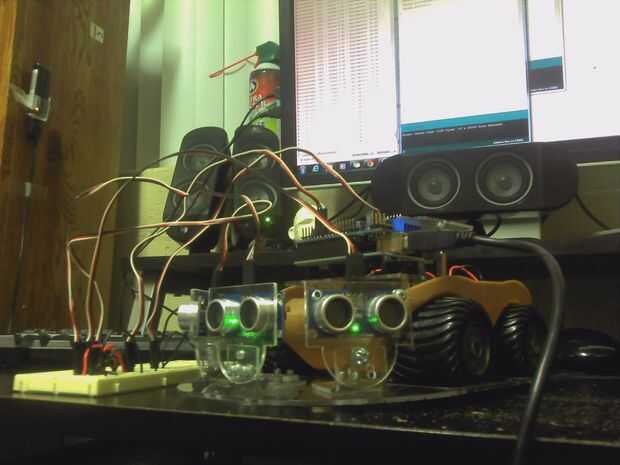 Este es mi intento de diseñar y construir un obstáculo evitando robot! RekaBot (nombrada de un hada (:) puede detectar obstáculos con un sensor de ultrasonidos que puede moverse con la ayuda de un servo. Basado en las medidas que toma, las pistas son