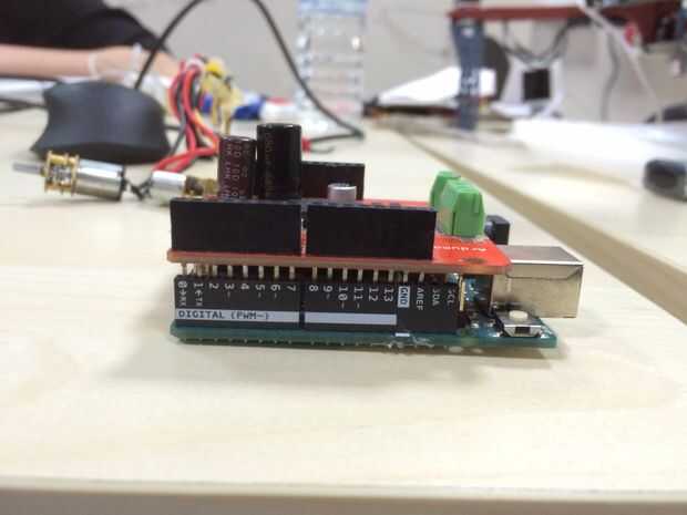 Utilizaremos un Arduino UNO y un ArduMoto escudo para Arduino. Básicamente, estamos utilizando un microcontrolador (Arduino) y un ad-on (ArduMoto) pues para tener un acceso más fácil a nuestros motores. Tenemos una sección más detallada acerca de cómo ellos funcionan juntos en la sección de "Código" pero aquí hay algunos enlaces que usted puede beneficiarse de: