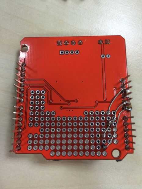 Para este paso, se necesita soldar su Arduino y ArduMoto, si son unsoldered. Después de que mantener el soldador caliente porque tendrás que soldar 2 condensadores en el tablero entonces soldar a los pines designados en la foto. Luego bloqueo de los tableros. Esta forma se conectan los pines de las tarjetas físicamente y listo para conectar las partes exteriores.