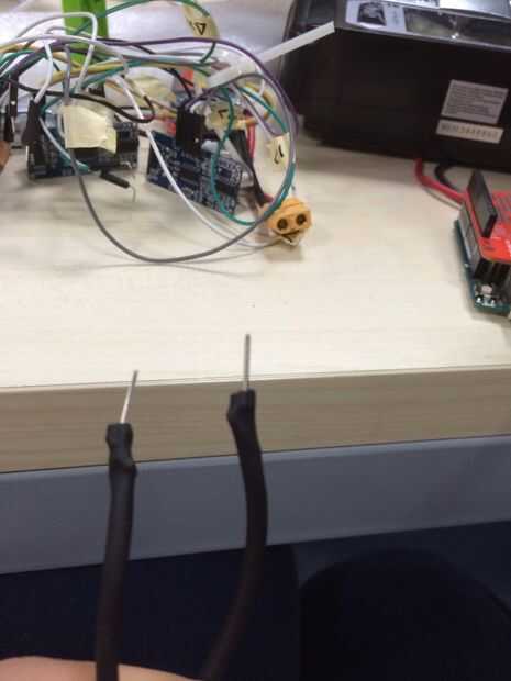 Alto voltaje de la batería se debe conectar (+) debe conectarse al pin (-) de la ArduMoto pin de la primera sección y tierra de la batería. Como se puede ver en la segunda foto, soldar cabeceras a los extremos de los cables (el lado que se conectará a nuestra Junta Directiva) y cubierto con tubos termo-retráctil para la durabilidad. No es necesario sino óptima. Luego conectarlos como sigue: