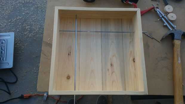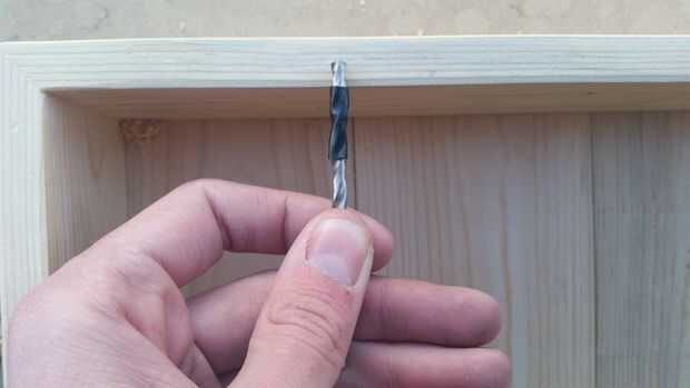 Es hora de decidir dónde deben colocarse las varillas. Tradicionalmente van en el medio. Sin embargo, siendo 6'3 "con los brazos muy largos, personalmente no quiero que quede cerca de la esquina donde volver la bola. Hice mía una cuarta parte del camino hacia el lado. Perfore totalmente a través en los lados donde quieras tus botones localizados. Exactamente opuesto (Recuerde que ser exactos), medio camino a través del lado del taladro.