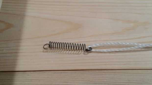 Doblar un extremo del resorte para hacer un ciclo completo para atar la cuerda a. En el otro extremo de la curva sólo una capa de la primavera a la moda un gancho. Éste se enganchará a la vista asegurada a las inclinaciones.