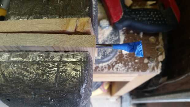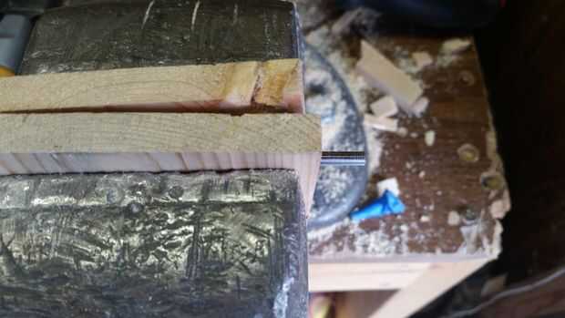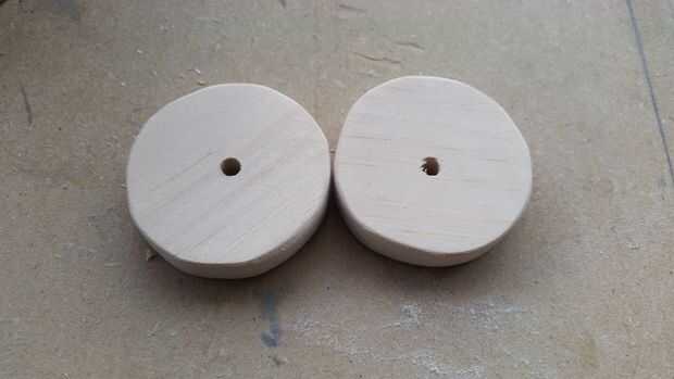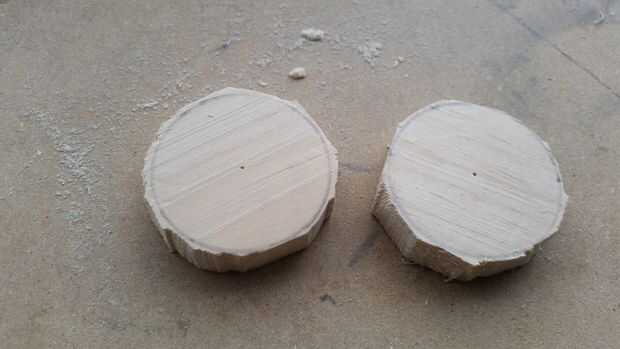 Corte el resto de la 2 x 4 por la mitad. Dibuja dos círculos con un compás y corta.