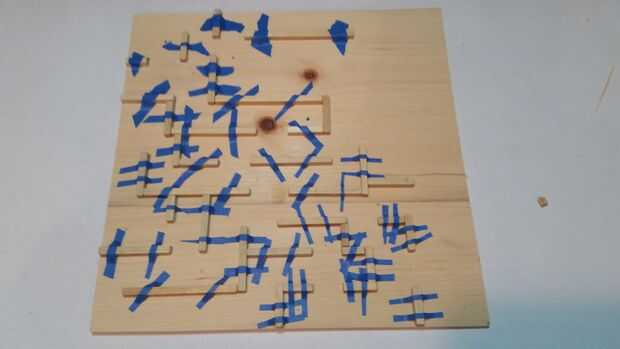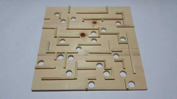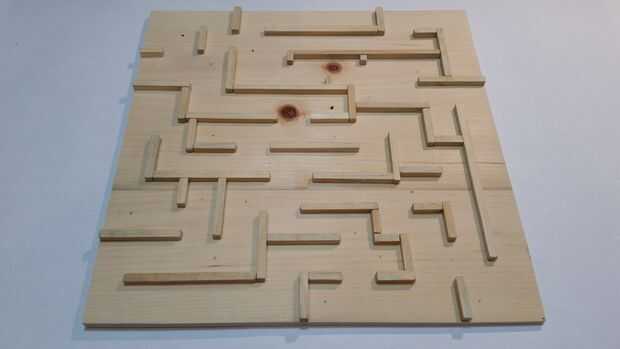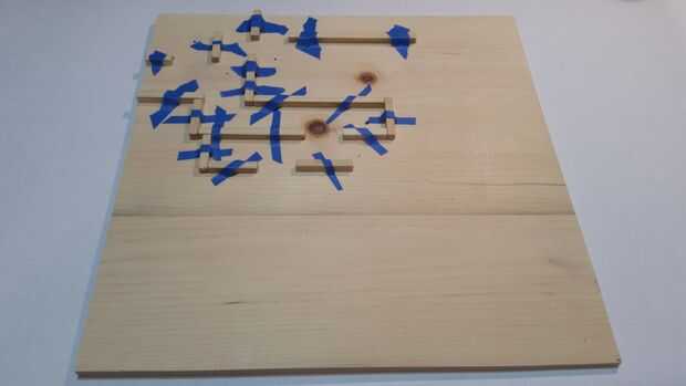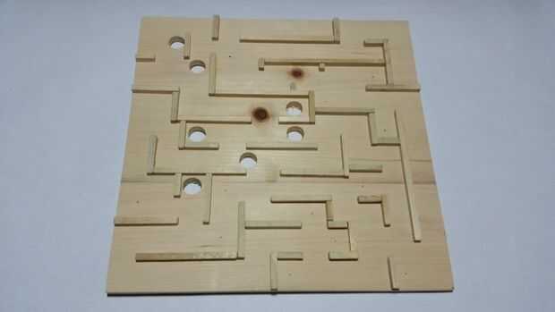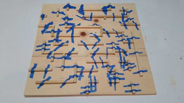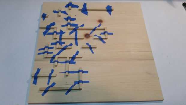 Con lo que te queda de los palos de 1/4 de pulgada, diseño, corte, pegamento y taladre los agujeros para el laberinto.