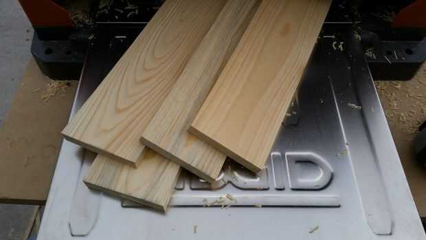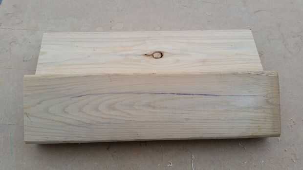 Dos 13" longitudes de corte de 2 x 4 y rip en la mitad longitudinalmente.