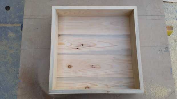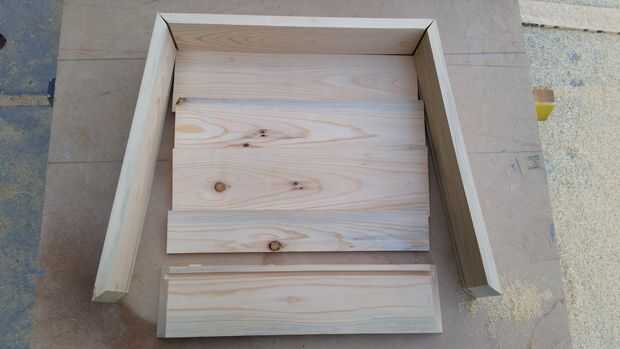 Para hacer la parte inferior, cortar 2 tiras de 12 3/4" de la 2 x 4 y rasgar en tercios a lo largo. Lamentablemente, yo no pegue estos juntos. Te sugiero pegarles y cepillado hasta 1/4".