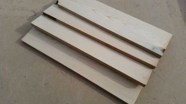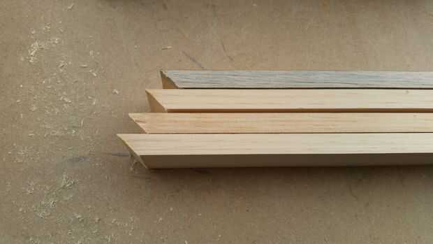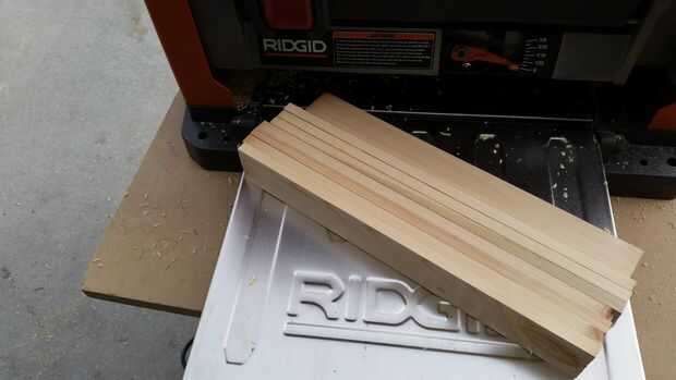 Para hacer el primer pivote, cortar 11 3/4" de 2 x 4. RIP a ambas direcciones para terminar con 4 tableros que son aproximadamente 11 3/4 "x 3/4" x 1 3/4". Plano a 1/2". Corte los ángulos de 45°. Unirlo todo.