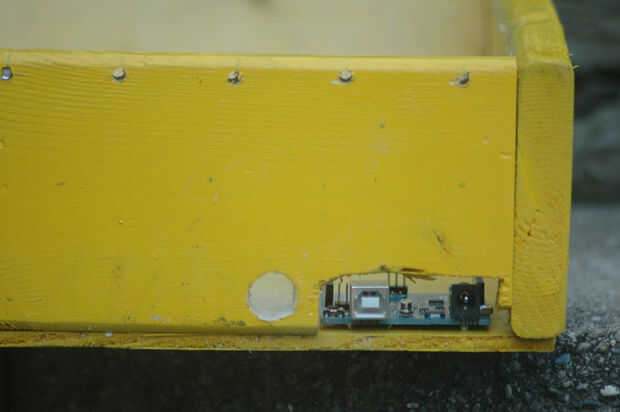 Es el momento para añadir el sonido al laberinto. En primer lugar, asegúrese de que su timbre es un zumbador pasivo. Un buzzer activo no para este proyecto debido a que sólo tiene una echada. A continuación, perfore un agujero suficientemente grande para que el timbre al lado de la Arduino. Utilice pegamento caliente para fijar la alarma en el lugar. Por último, soldar el zumbador en el circuito principal.