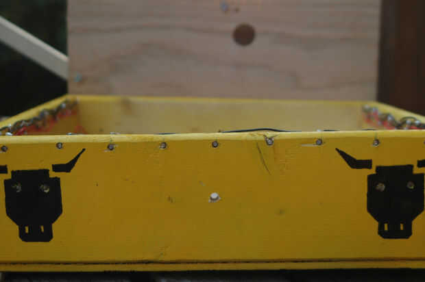 Por último, añadir los LEDs que se utilizará con el circuito del 555 temporizador. Pegue su LEDs de 3mm en los agujeros que rodean el perímetro de la caja. Asegúrese de que pegue en el orden deseado. Después de que sea completa, cable el LED en el circuito principal. Te recomiendo para empezar a soldar en una esquina y trabaja su manera alrededor de la otra esquina. Este método hace de soldadura mucho más organizado. Asegúrese que los cables positivos y negativos no tocan porque esto hará que los LEDs no funcionan.