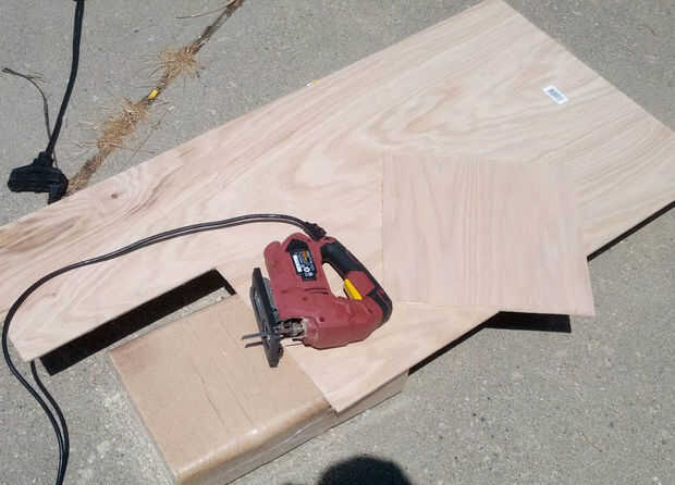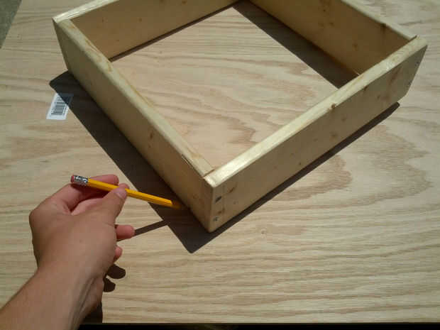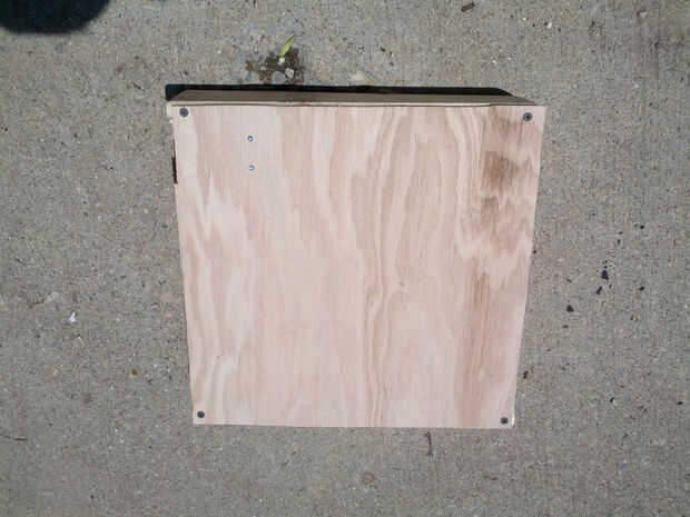 Una vez terminada la parte principal de la caja, se necesita un fondo. Para hacer esto, simplemente coloque la caja en la madera contrachapada fina y trace una línea alrededor del exterior con un lápiz. Después de hecho esto, coloque la madera contrachapada sobre unos caballetes y utilice una sierra de calar para cortar a lo largo de las líneas. Finalmente, taladre orificios guía y fije la madera contrachapada en la parte inferior con tornillos para madera. De nuevo, lijar se recomienda para un borde rasante.