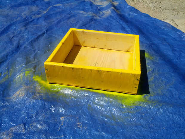 Todo se ve mejor en color (solo ver una vieja película en blanco y negro y usted sabrá lo que estoy hablando), así que azote hacia fuera de una lata de pintura en aerosol. Yo elegí amarillo y morado para mi de colores, así que pinté mi laberinto amarillo. su caja en una lona y una máscara. Usé unas cuatro capas antes de que estaba satisfecho con el color. Si usted decide utilizar múltiples capas que darle tiempo suficiente para que la pintura definir.