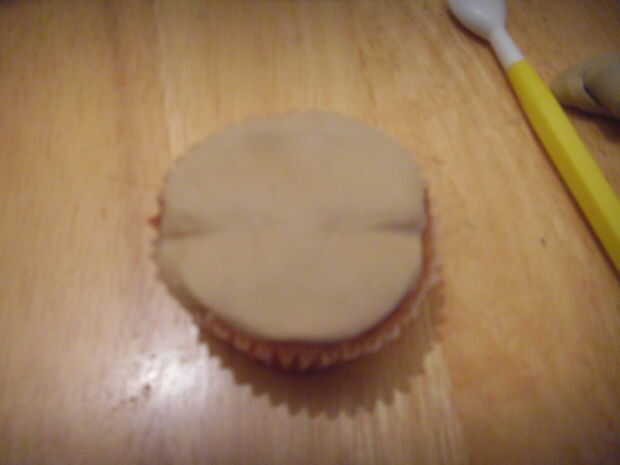 Rodillo y aplanar una bolita de pasta marrón, palo de como su sombrero.
