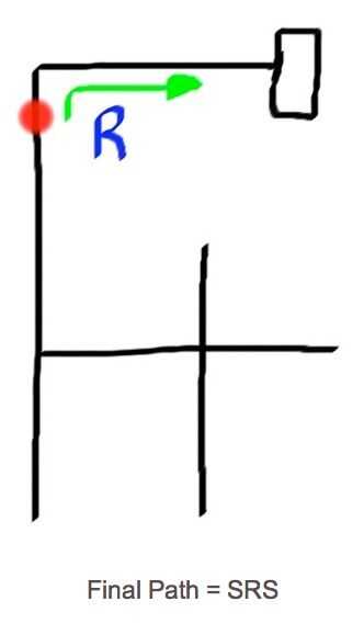Así que tenemos nuestro camino para ir de LBLLBSR al camino correcto que es SRR. Para empezar veremos donde nos fue mal. Una "B" indica al robot vuelto significado fue por el camino equivocado. Para optimizar la ruta tenemos para deshacerse de la "B" mediante el uso de alguna sustitución.