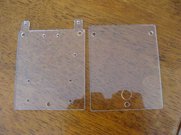 Se pueden ver en las fotos el diseño que hice y las piezas que utiliza un láser de corte para hacer. Las piezas son hechas de acrílico que es. 08" de espesor. Esto se puede encontrar en The Home Depot.