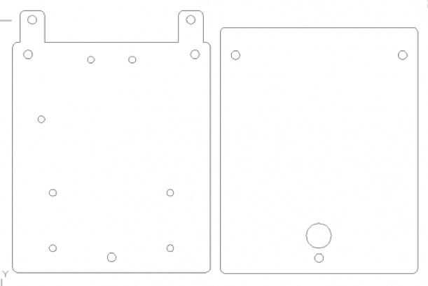 En la tercera foto se puede ver la cubierta inferior en mi diseño de chasis de la 2 cubierta. La cubierta de la parte inferior tiene orificios de montaje en la parte trasera para los motores del perno en, agujeros en la parte frontal para el lanzador de la bola del perno en, un agujero para perno de Arduino en y 2 fichas en la parte delantera donde el sensor pernos en. La cubierta inferior también tiene 3 agujeros que le permiten estar conectado a la cubierta de la tapa usando los pernos y los espaciadores.
