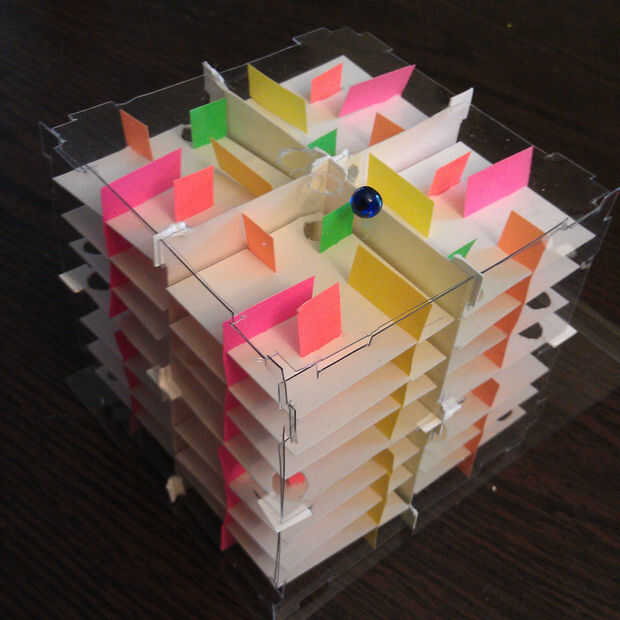 Tiempo para perderse en un proyecto!El laberinto de bolas cambiantes es un rompecabezas 3D portátil que es nunca lo mismo dos veces. Ponga junto con algunas habilidades de fabricación de rompecabezas y geometría y resolverlo utilizando el sonido, el