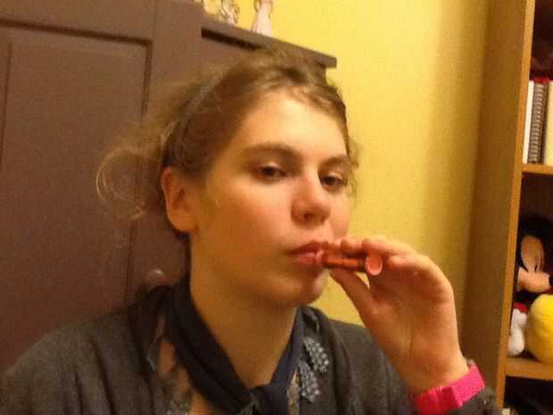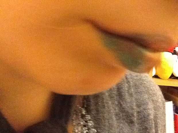Primero se aplicará una capa uniforme de bálsamo para los labios (Foto 1). Luego aplique una cantidad de gene rouse de sombra de ojos, dejando la elección del color depende de ti (Foto 2). Selfie. Luego aplicar brillo de labios a tus labios una apariencia brillante y brillo de labios de bronce en el centro de tus labios. (foto 4) y luego haya terminado. Sonrisa.