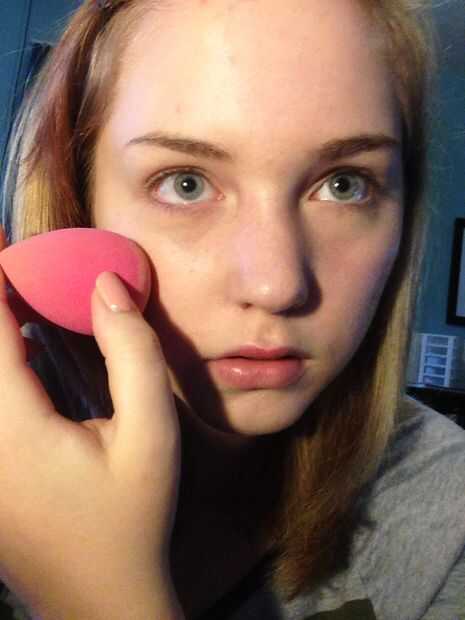 Un sheerer y menos efecto de aspecto pesado, punto base donde se necesita más, como en sus mejillas si son rojos. Luego, mezclarlo todo con los dedos o una esponja.