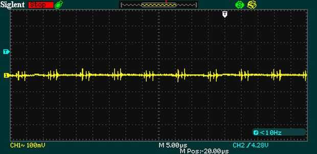He tenido un ruido terrible del paso convertidor en el carril de 9V para el osciloscopio y el arduino que se trataba de 400mV.