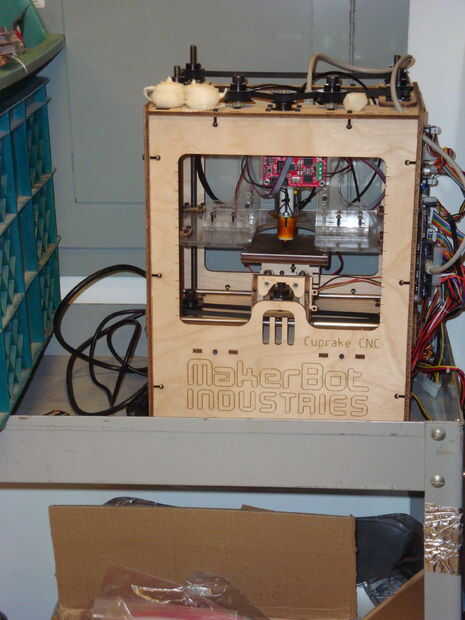 Dentro de la puerta es nuestro MakerBot, con alguna salida de la prueba.