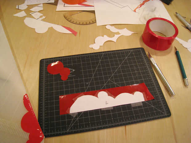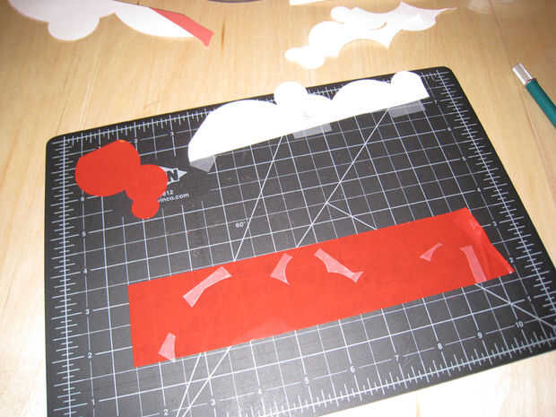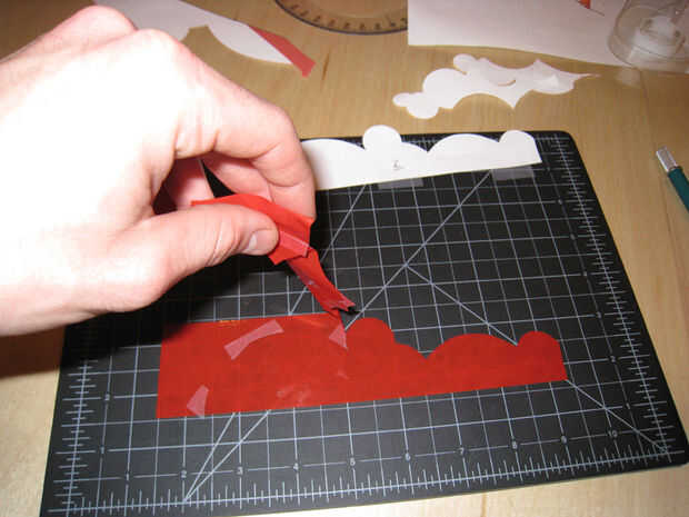 Plantilla, cinta, cortar, pelar, aplicar