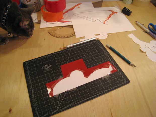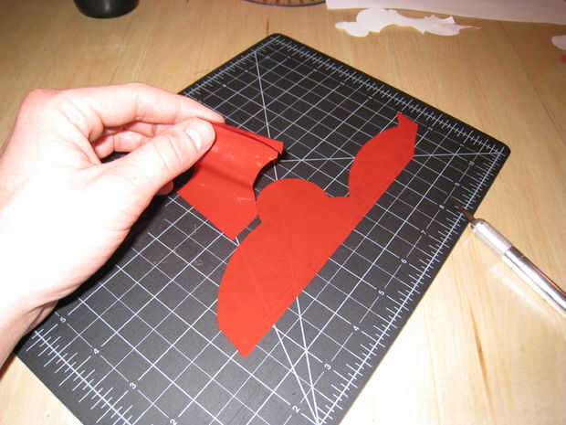 Plantilla, cinta, cortar, pelar, aplicar