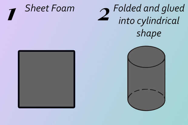 Doblar la espuma en forma cilíndrica y usando pegamento de contacto pegamento los bordes juntos.