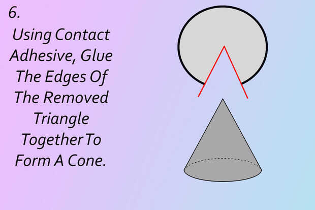 Uso de adhesivo de contacto, pegar los bordes del círculo para formar un cono.