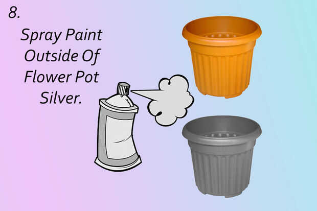 Utilizando pintura en aerosol plata, pintar el exterior de la maceta plata.
