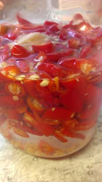 Estaba en un tiro de conserva en vinagre y tiene un poco loco con Decapado lotes grandes de chiles tailandeses y Habaneros. Son algo difíciles de estómago a comer por su cuenta así que me quedé con un problema de qué hacer con ellos. Solución más fác
