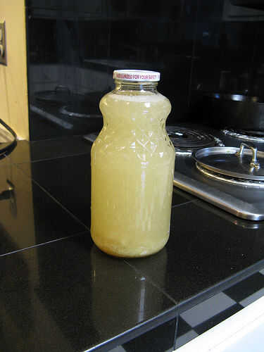 En un lote, después de un día a temperatura ambiente, derramé la cerveza de jengibre en un recipiente diferente, porque preocupaba que no celebre la vieja gorra de metal en la botella de cristal que se muestra en las imágenes. Como resulta, la tapa de plástico de la botella nueva realmente agrietado bajo presión! Desde entonces he empezado reutilizando botellas de vidrio que carbónicas del agua, que se mantiene la presión.