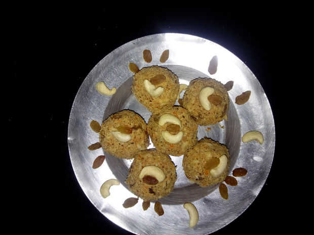 Ahora hacer laddu dándoles forma redonda con la mano y decore como desee.