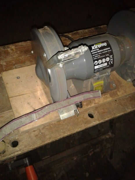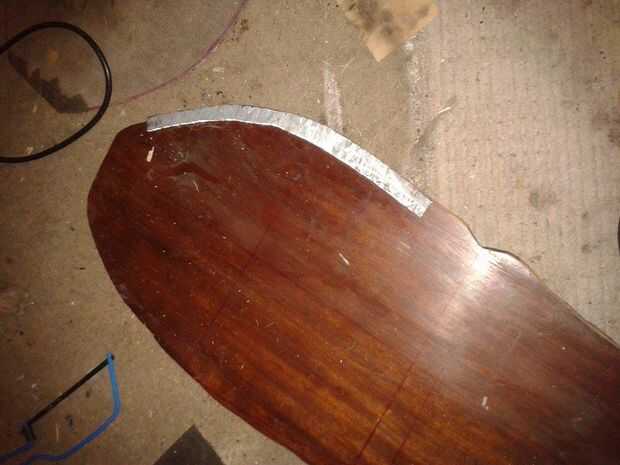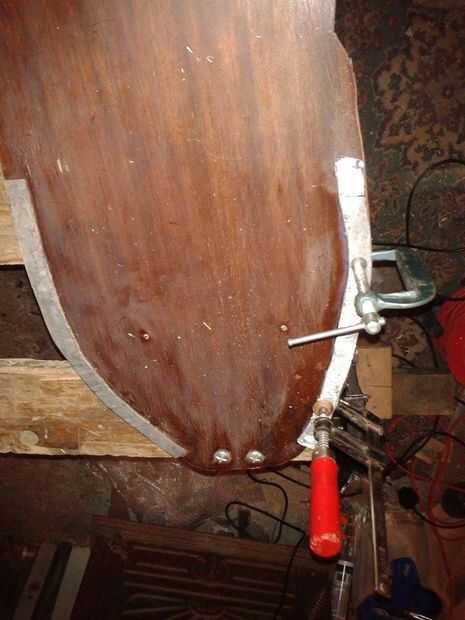 Hacer el mismo proceso pero esta medida del tiempo el ancho de los lados y simplemente cortar una tira de metal y doblar en la curva del escudo antes de epoxying en.