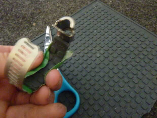 Se necesita para las abrazaderas de manguera de goma (o una esponja o algo similar) por lo que no se suelte mientras está conduciendo. Os adjunto el caucho con cinta adhesiva para mantenerlos en su lugar mientras les coloca.